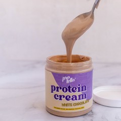 Protella® White Choco es una crema de chocolate blanco con avellanas tostadas que nos dará un aporte extra de energía.Esta crema lleva un 18% de proteína, además no contiene azúcares añadidos ni aceite de palma. Gracias a su textura, es fácil de untar y la puedes utilizar en tus tortitas, postres y recetas favoritas.